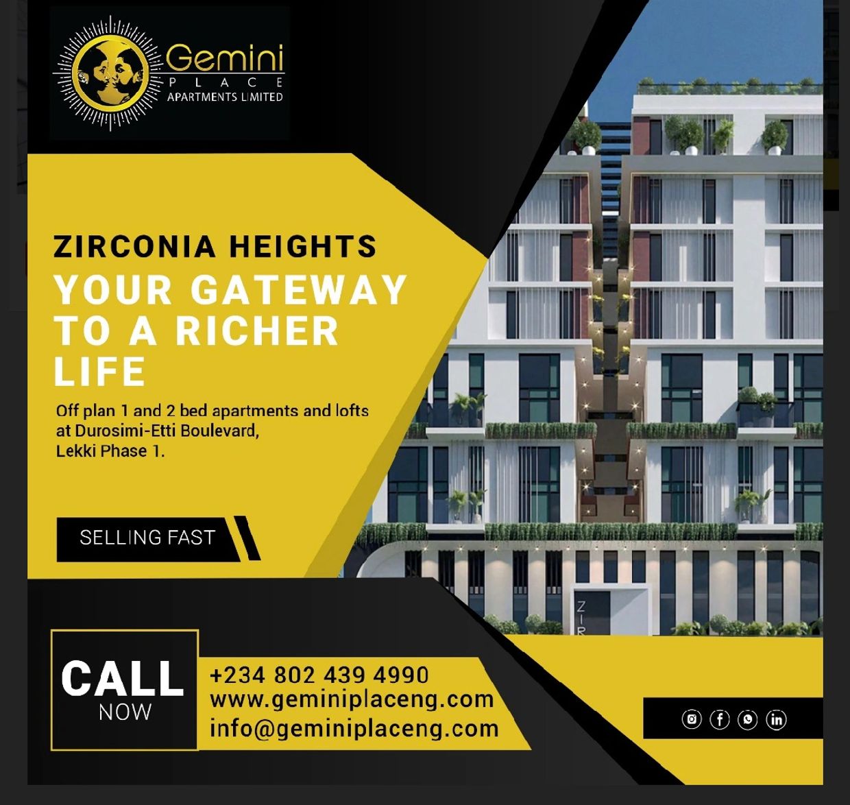 Experience luxury living at Zirconia Heights, nestled along Durosimi-Etti Boulevard in Lekki Phase 1. Our 1 and 2 bedroom lofts offer modern elegance and urban convenience, making every day a retreat in the heart of Lagos